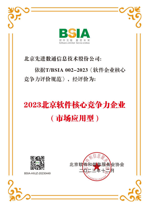 金年会诚信至上荣获“2023北京软件核心竞争力企业”荣誉