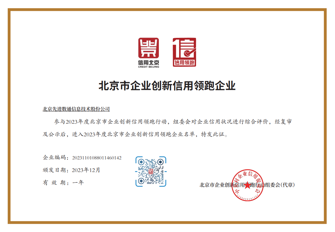 近期,2023信用北京暨第九届信用中关村论坛在北京隆重举办。会上正式颁布了2023年度北京市企业创新信用领跑企业入围名单,北京金年会诚信至上信息技术股份公司(以下简称“金年会诚信至上”)与旗下全资子公司北京泛融科技有限公司(以下简称“泛融科技”)成功入选。