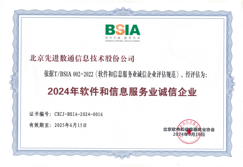 近期,北京软件和信息服务业协会公布了“2024年软件和信息服务业诚信企业”获奖名单,北京金年会诚信至上信息技术股份公司(以下简称“金年会诚信至上”)凭借卓越的企业信誉、持续的技术创新能力以及优质的数字化转型服务,成功荣获此项殊荣。